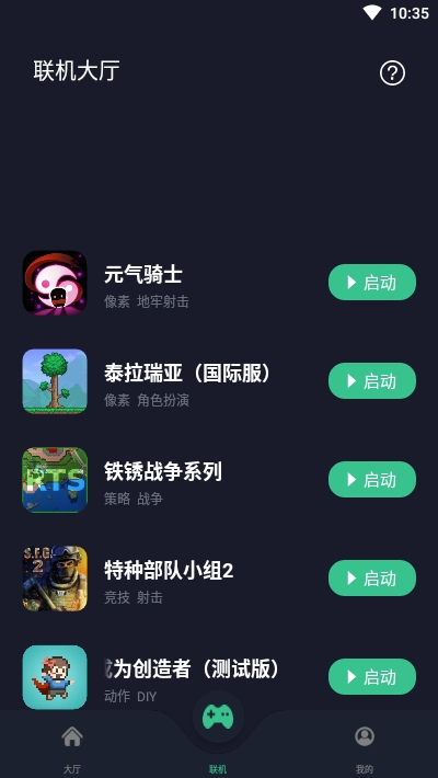 2. 联机中心:展示了目前支持联机的游戏列表,用户点击启动后进入游戏专线选择界面,可自由选择线路进行联机。