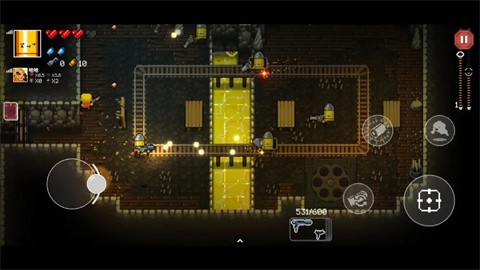 2. 战斗与躲避:游戏的核心玩法是射击和闪避,玩家需要在战斗中灵活躲避敌人的攻击,并用各种武器对抗它们。地牢中有数百种不同的武器可供发现和使用,包括手枪、火箭筒、激光枪等。