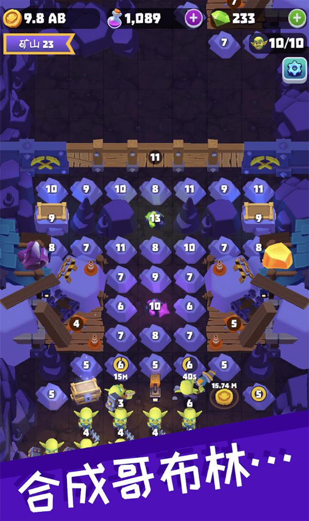 2. 挖矿操作:通过点击或滑动屏幕,控制哥布林矿工进行挖矿操作。挖矿过程中需要注意矿石的分布和矿洞的稳定性,避免坍塌。