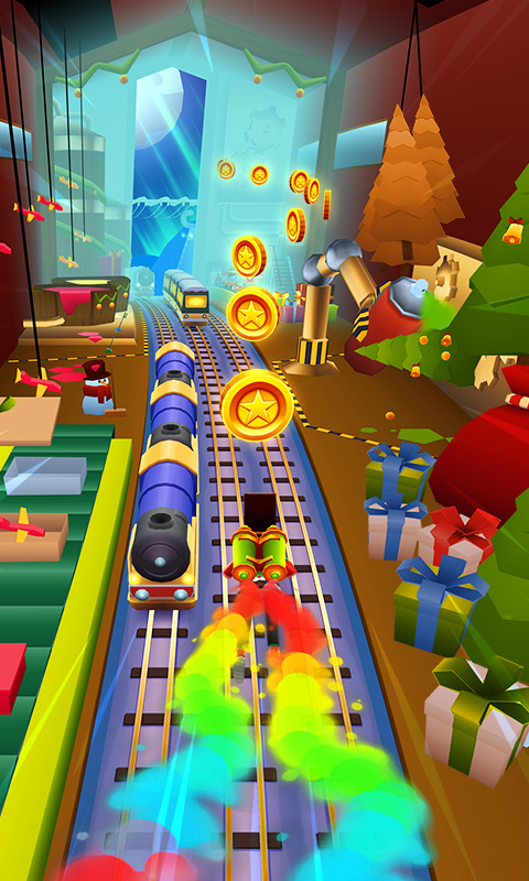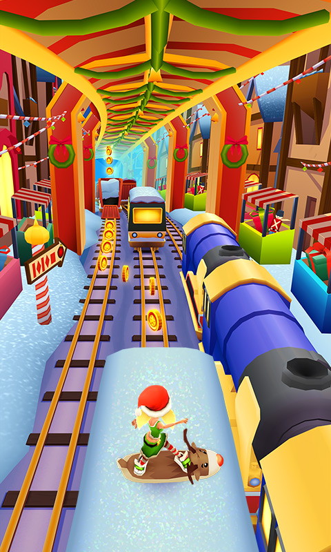 地铁跑酷圣诞版是一款以圣诞节为主题的经典跑酷类手机游戏。玩家将扮演一名街头涂鸦艺术家,在节日氛围浓厚的地铁轨道上疾驰,躲避警察的追捕,同时收集金币和各种圣诞特色道具,享受刺激而欢快的跑酷体验。