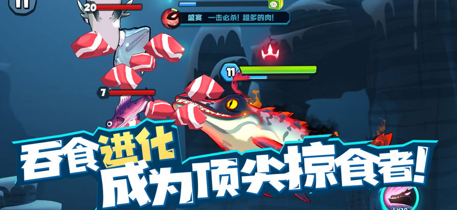 2. 升级与进化:吞噬足够的鱼类后,你的小鱼会不断成长,并有机会进化为更强大的鱼类。