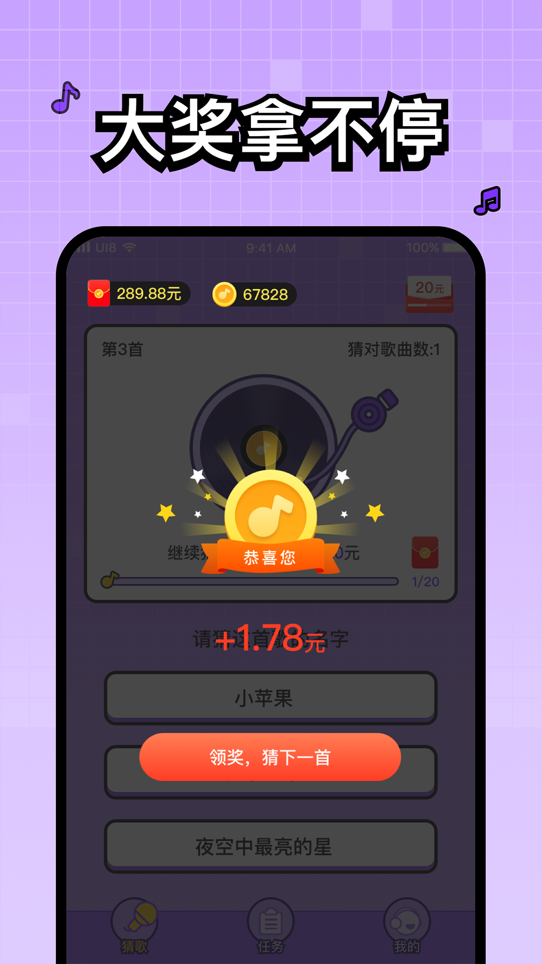 猜歌大师安卓版凭借其丰富的歌曲库、多样的游戏模式、精准的音频识别技术和强大的社交互动功能,成为音乐爱好者的首选娱乐应用。无论你是流行音乐的追随者,还是古典音乐的拥趸,都能在这里找到属于自己的音乐天地。快来下载猜歌大师安卓版,开启你的音乐猜谜之旅吧!