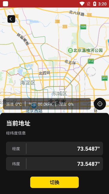 2. 开启定位功能,软件将自动获取当前位置信息并在地图上展示。