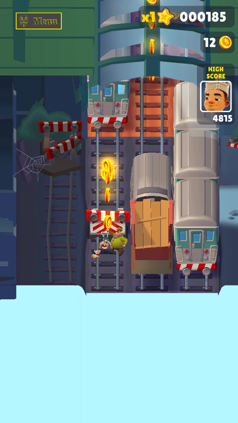 1. 玩家需要控制角色在地铁轨道上不断奔跑,躲避各种障碍物,如火车、栏杆、隧道墙壁等。
