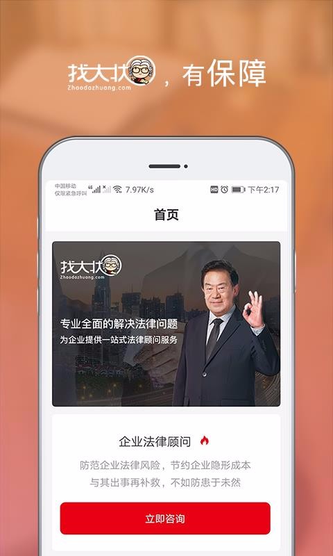 找大状app主要是为中小型企业提供法律服务,打造专业、高效、便捷的法律服务场所,帮助企业用户解决遇到的法律问题;在平台内聚集了非常多专业律师,提供线上服务,并且响应速度非常快;您只需要在线上发布法律需求,然后就会有专业律师联系你,根据提出需求的不同给与合适的解决方案,助力企业用户在短时间内处理遇到的问题;法律文书、合同、规章等服务都有提供,直接将所有内容提交给用户,更轻松的解决问题;欢迎感兴趣的朋友安装找大状手机版使用,寻找合适自己企业的法律顾问,通过线上平台处理法律问题。用户通过找大状app可直接在线资讯律师,手机上即可帮助用户获得专业的律师咨询建议,同时软件还有百余份专业合同范本提供,帮助用户草稿。有需要的用户欢迎下载使用。