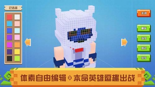 1、探索、设计、创造!通过游戏内置的体素编辑器对英雄进行再创作,从一个方块开始,再到魔性变身的畅快对决!