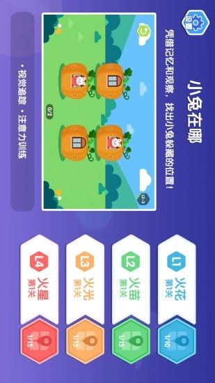 小兔在哪火星思维是一款专为儿童设计的益智启蒙软件,旨在通过趣味性的互动游戏,激发孩子们的逻辑思维能力、观察力和空间想象力。该软件融合了丰富的故事情节和多彩的画面,让孩子们在玩耍中学习,提升他们的综合素质。
