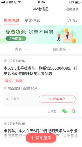 7.服务类型:零担/整车、实时配送/提货、预约配送/提货、代收货款等。