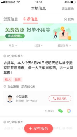 3.每一辆车都有实时的位置的监控的,随时查看你的货物的位置的信息。