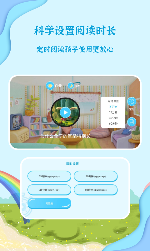 3. 设置定时关闭功能,让孩子在享受阅读的同时保证充足的睡眠。