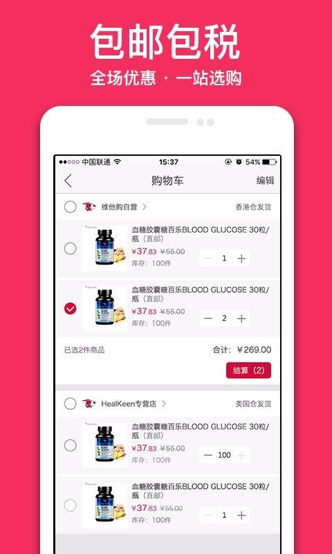 3.用户可以将对个保健食品加到购物车,从购物车购买更加方便;