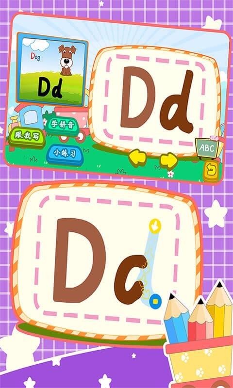 宝宝英语写字板app是一款免费的启蒙早教类应用软件,也是一个让孩子可以轻松学习简单英语知识的平台,让孩子能够从小打下英语学习基础,从小就能爱上学习英语,提高孩子的学习效率以及学习兴趣;该应用采用趣味卡通风格设计,专为3到8岁儿童量身打造,也非常适合广大学龄前儿童以及幼儿园孩子使用;每张卡片都带有详细的语音朗读内容以及图片,根据英语单词以及英语字母,提供相应的卡片内容,让孩子可以看图学习,加深每个字母的印象;宝宝英语写字板app让孩子学英语、认识英文字母ABC,促进小朋友对英语字母表的认知,认字写字的基础学习单词教材。让小朋友通过学习简单的字母课程来为日后更好的学习英文打下基础。除此之外,app还拥有绝妙的亲子活动,在宝宝学习英语时候还能和宝宝一起学习交流,增进亲子之间感情,提高孩子的学习效率。
