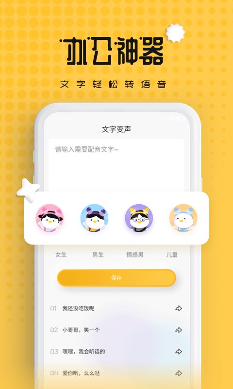 4. 录音功能:支持录音并保存变声后的音频文件,方便用户随时分享或后续处理。