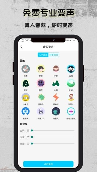 2. 预设音效:提供多种预设变声效果,如机器人、小孩、大叔、女生等,满足不同用户的需求。