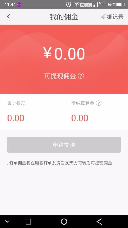 随时申请提醒,用户在此绑定银行卡之后即可随时提现自己赚到的佣金;