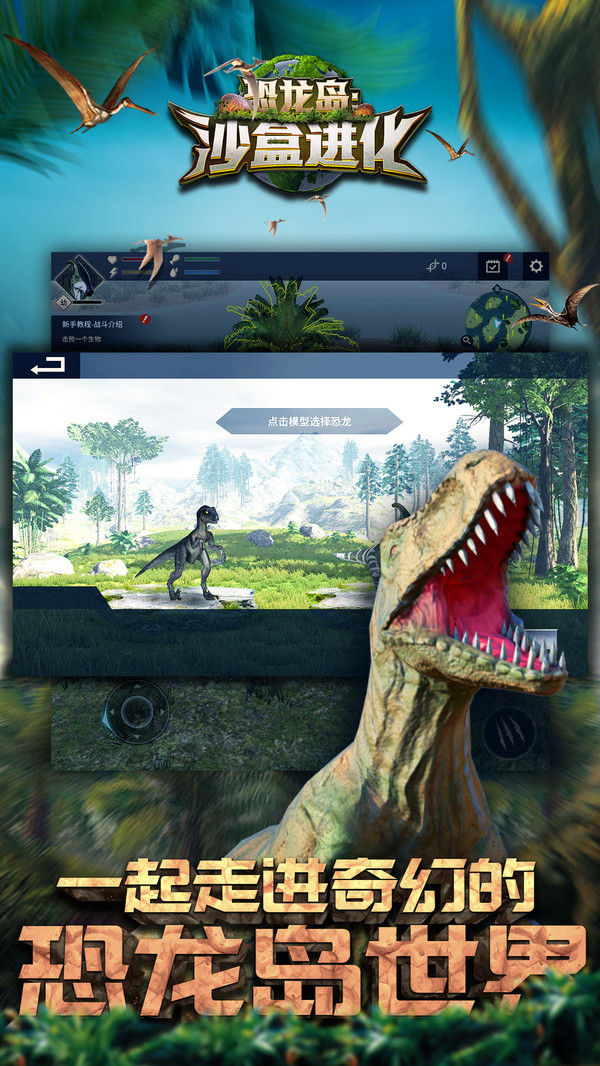 《恐龙岛:沙盒进化内置菜单》是一款集冒险、解谜与沙盒生存于一体的手机游戏。玩家将扮演一只恐龙,在广袤无垠的岛屿上自由探索、狩猎、生存并进化。游戏以其逼真的3D效果和丰富的游戏内容,为玩家带来了身临其境的侏罗纪时代体验。