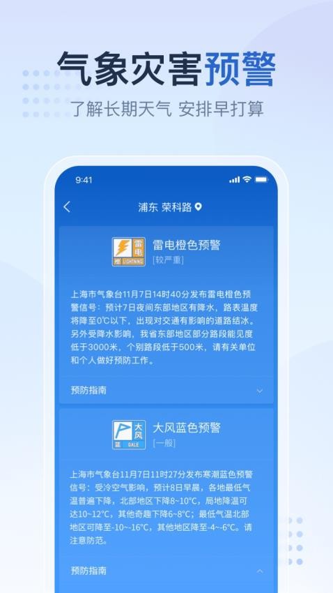 4. 气象灾害预警:及时发布台风、暴雨、暴雪、雾霾等气象灾害预警信息,保障用户生命财产安全。