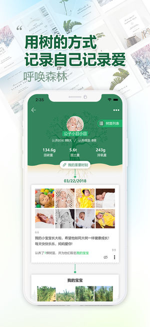 4. 记录特殊时刻:用户可以在重要时刻认养树木,以此记录人生的美好时光和故事。