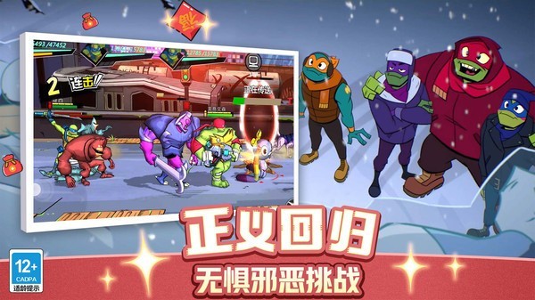 2. 丰富的角色选择:玩家可以选择扮演四位不同的忍者龟,每位角色都有独特的技能和攻击方式,满足不同玩家的战斗风格。