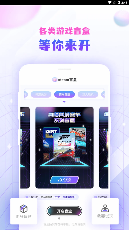 2. 游戏兑换:用户开启盲盒后获得的游戏兑换码,可以在Steam平台上兑换并下载对应的游戏。