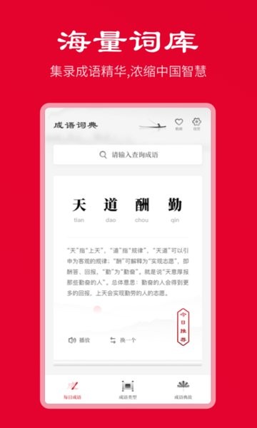 中华成语词典是一款专注于成语查询、学习与应用的软件,旨在帮助用户深入理解成语的含义、出处及用法,提升语言表达能力和文化素养。