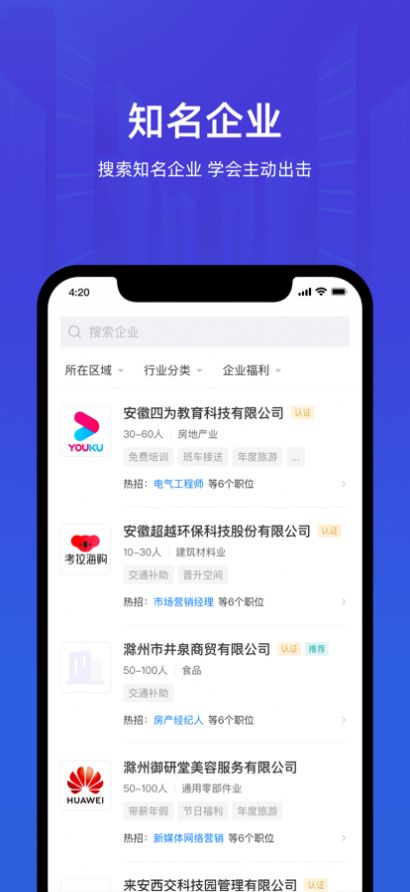 2. 企业信息透明展现:求职者可以通过皖聘宝全面了解企业环境、福利待遇、企业文化和团队构成等信息,帮助求职者做出更明智的职业选择。
