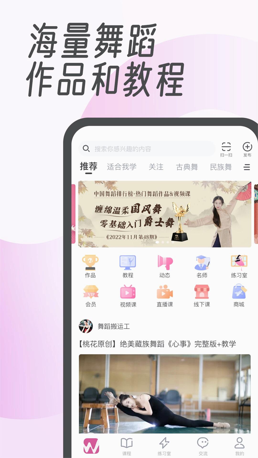 1. 舞蹈视频与教程:应用内包含全舞种各类海量免费舞蹈作品、教程和实用资料,满足用户的不同学习需求。