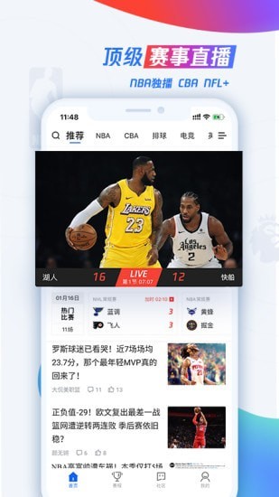 1. 赛事直播:涵盖国内外各大体育赛事的直播服务,包括中超、英超、NBA等热门联赛。