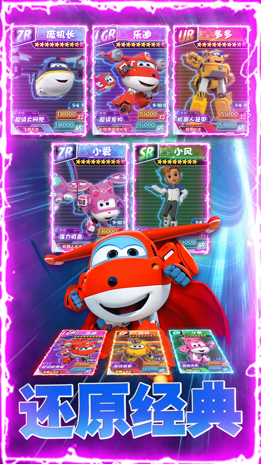 2. 卡牌养成:通过升级、升星、装备强化等方式提升卡牌实力,让超级飞侠角色更加强大。