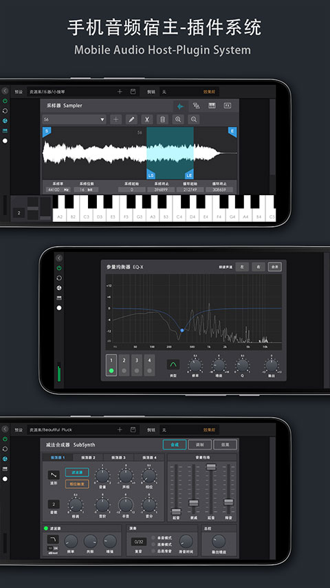 1. 多种合成器与采样器:Caustic提供了多种合成器和采样器,用户可自定义音色和效果,创作出特别的音乐作品。