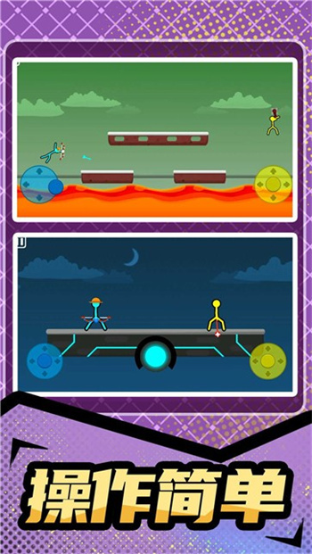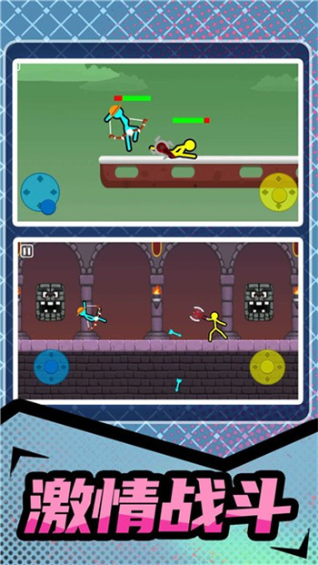1. 独特的火柴人画风:游戏采用简洁的火柴人形象设计,搭配丰富的色彩和动态效果,营造出独特的视觉效果。