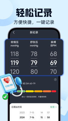 1. 健康数据管理:用户可以方便地查看和管理自己的健康数据,包括历史记录和趋势图。