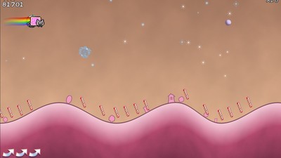 2. 操作:玩家通过滑动屏幕来控制彩虹猫的跳跃、滑行和转向等动作,灵活应对各种地形和障碍。