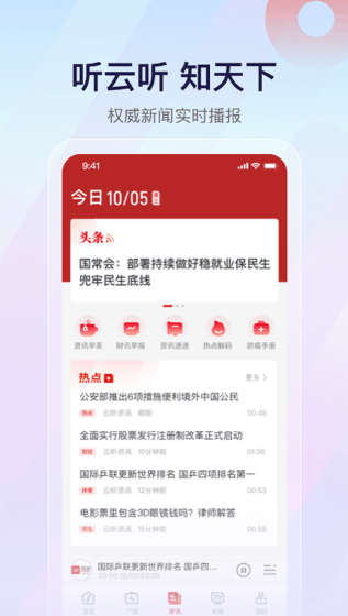 3. 听资讯:云听APP提供权威的新闻实时播报,用户可以随时了解天下大事,掌握最新资讯。