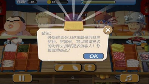 4.当客人吃饱喝足时,你可以拿到钱,然后用这些钱来建你的寿司店。