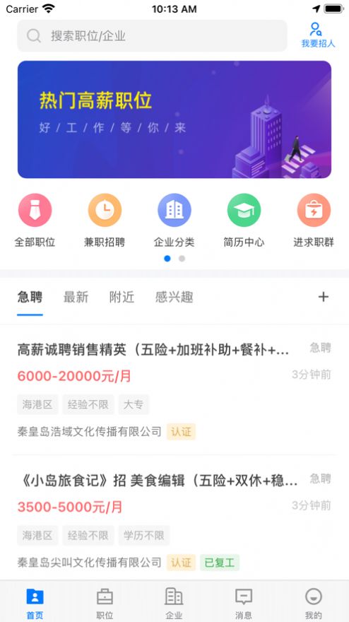 秦皇快聘APP通过智能匹配技术,为求职者精准推荐符合其技能和经验的岗位,同时为企业提供高质量的人才资源。平台覆盖了多个行业和职位,满足不同用户的招聘与求职需求。