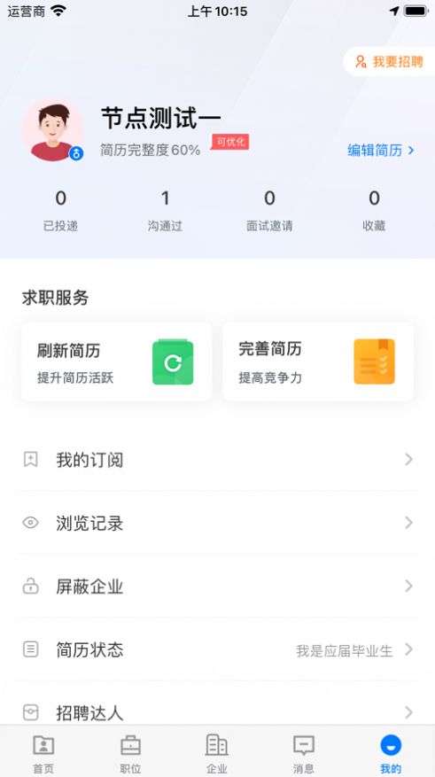 4. 求职动态:记录用户的求职历程,包括投递记录、面试邀请等信息,方便用户随时查看。