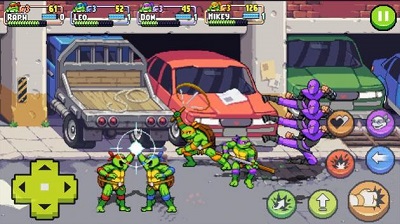 2. 多角色可选:玩家可以选择四只忍者神龟(莱昂纳多、米开朗基罗、多纳泰罗和拉斐尔),以及斯普林特大师和女记者艾普丽尔进行游戏,每个角色都有独特的技能和动作。