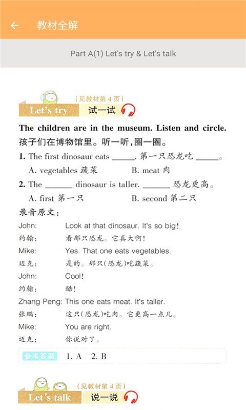 2. 课文朗读:可播放下册所有课文的纯正英语朗读,支持点读、连读模式,便于学生模仿和跟读。