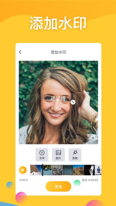 添加水印:水印效果可以放在视频任意位置,让你的视频留下专属于你的文字或LOGO。