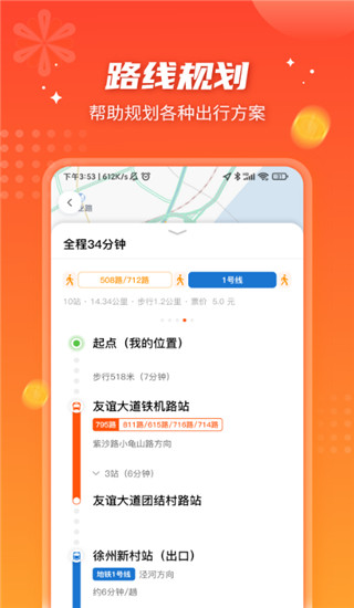 2. 线路规划:根据起始点和目的地智能推荐最优公交线路,支持多种出行方案对比。