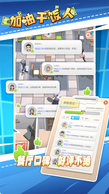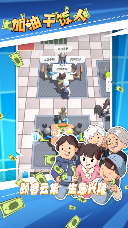 加油干饭人是一款轻松有趣的模拟经营游戏,玩家将扮演一位餐厅老板,通过精心管理和经营自己的餐厅,吸引顾客,满足他们的美食需求,从而赚取更多的收益并扩大餐厅规模。