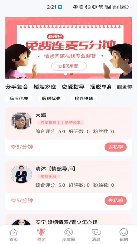 4. 专业咨询:连接专业心理咨询师,提供一对一在线咨询服务。