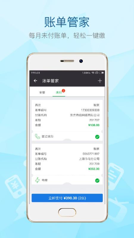 [2]账单管家:所有的缴费账单都能一手掌握进行管理;