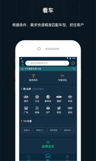 【看车】:根据条件、需求快速精准匹配车型,抓住客户。