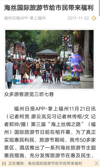 掌上福州是一款当地政府部门认可的资讯软件,依托福州市众多新闻媒体向用户提供权威专业的资讯服务,带你一起掌握福州当地生活动态;软件所有资讯获取渠道均来自福州日报社,用户不仅可以看到各种资讯文章,依托福州日报、福州晚报、福州新闻网、家园杂志,为读者提供福州最权威信息和最有用的生活资讯服务。作为福州最具影响力的本地传媒,福州日报社拥有一批高素质的记者奔波在大街小巷,掌上福州的直播功能,将让网友与记者一起直击现场,第一时间了解最鲜活的新闻。全方位覆盖了用户生活的方方面面;软件推送线下活动信息并提供报名渠道,参加活动就有机会免费获得礼品以及门票奖励,让你免费收听一场精彩的音乐会。