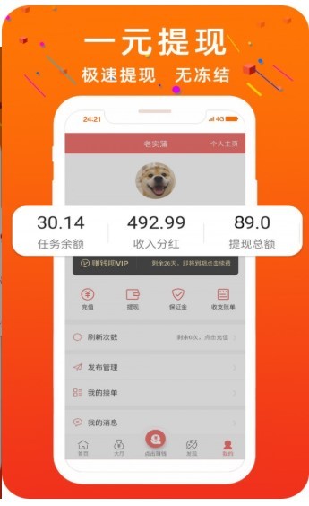 4、提现门槛:1元即可提现,三分钟通过审核赚钱任务。