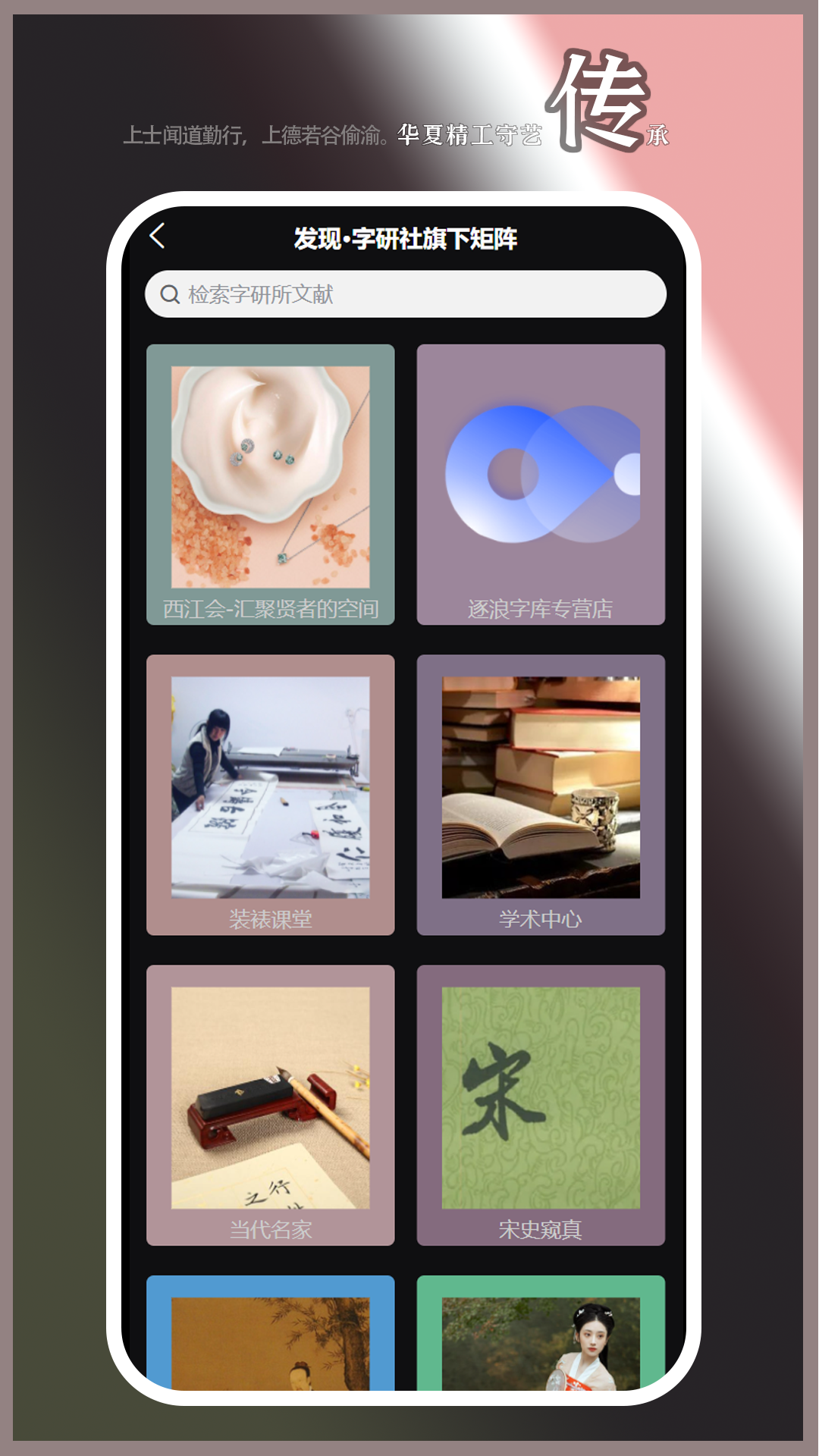2. 知识教学:涵盖装裱知识、古籍修复、瘦金研究、宋史窥真等多个方面的知识内容,助力用户深入了解中国传统艺术。