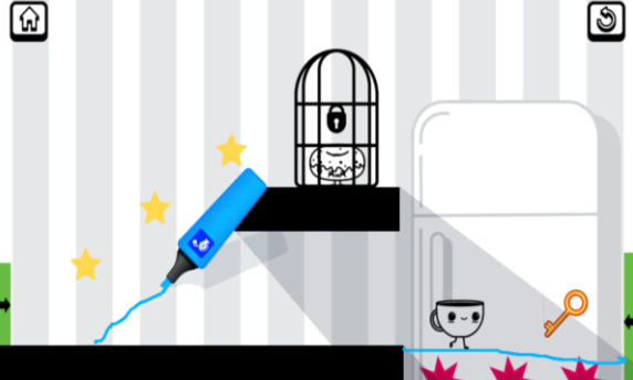 2、轻松的划线操作模式指引水杯不断地前进,不注意躲避开出现的各种障碍物的阻挡;