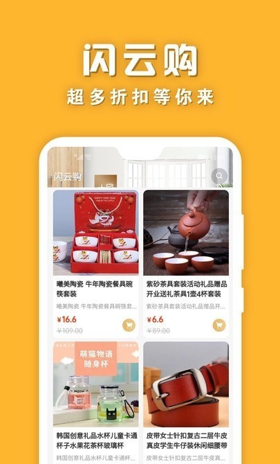 闪云购通过整合优质商家资源,提供涵盖服饰、数码、家居、美食等多个品类的商品,同时结合大数据分析技术,精准推送个性化优惠信息,帮助用户发现心仪好物并享受实惠价格。